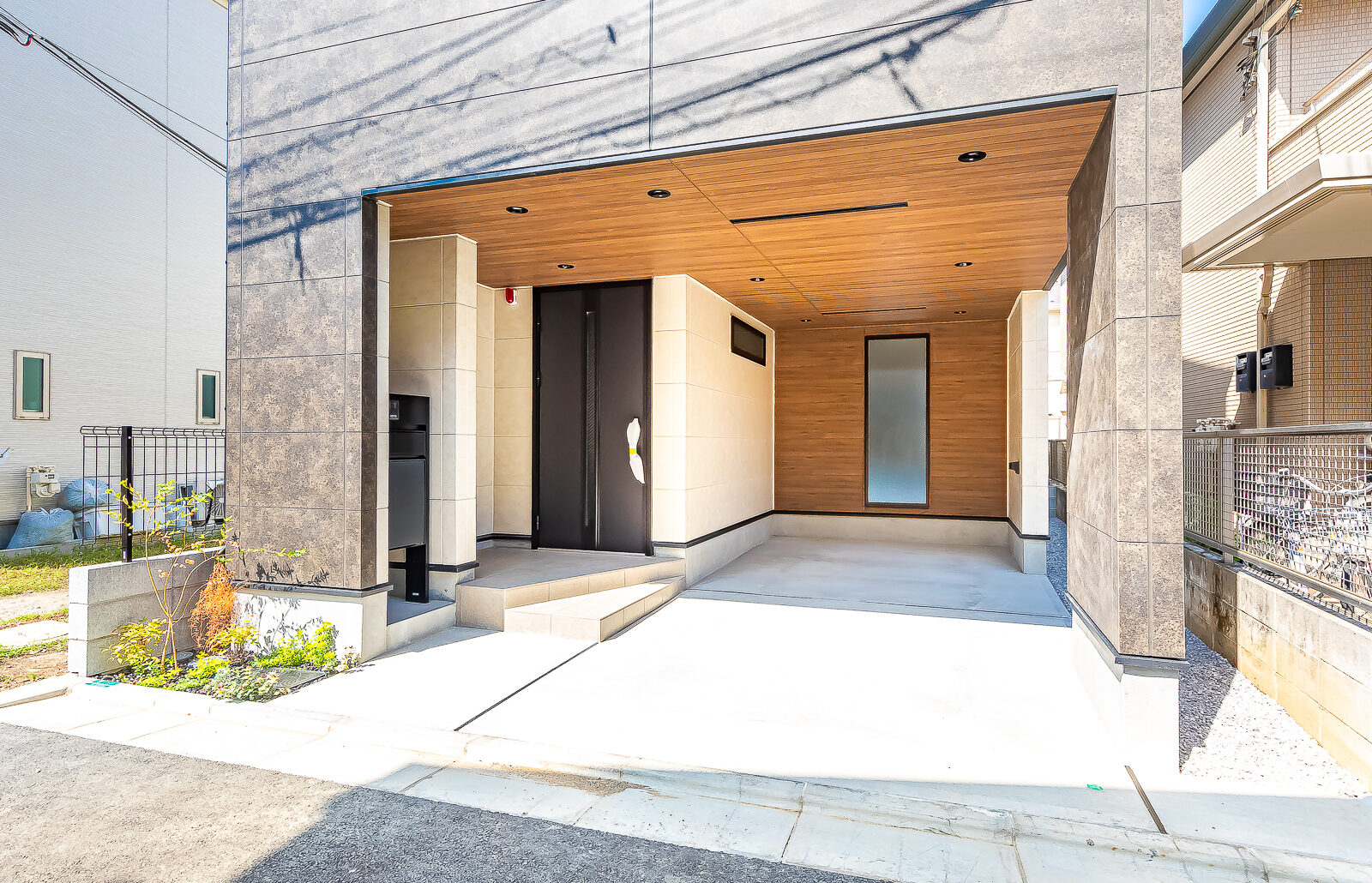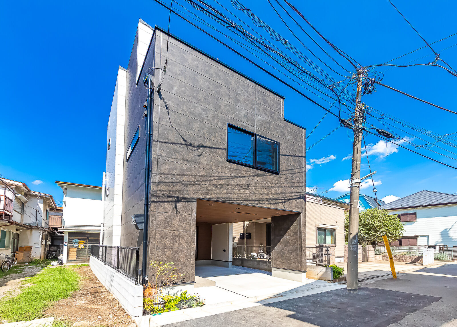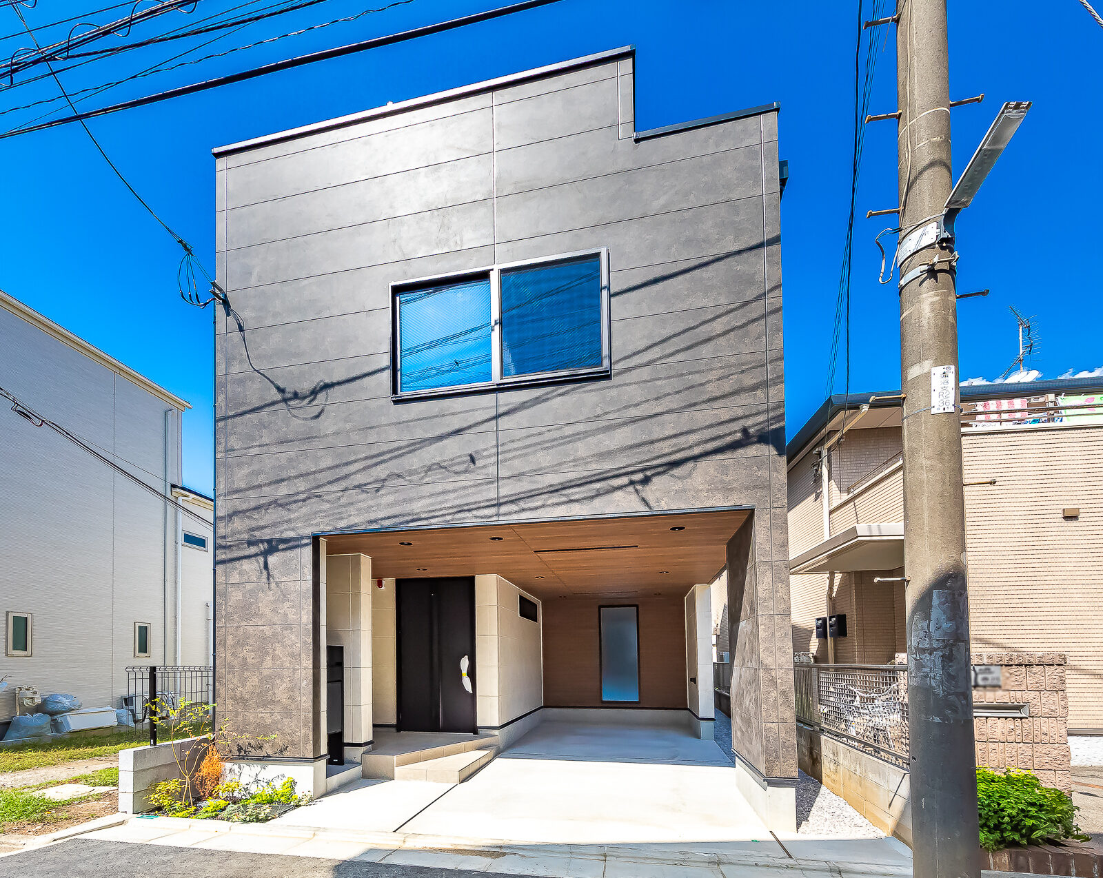黒錆調の外壁をメインアクセントとし、